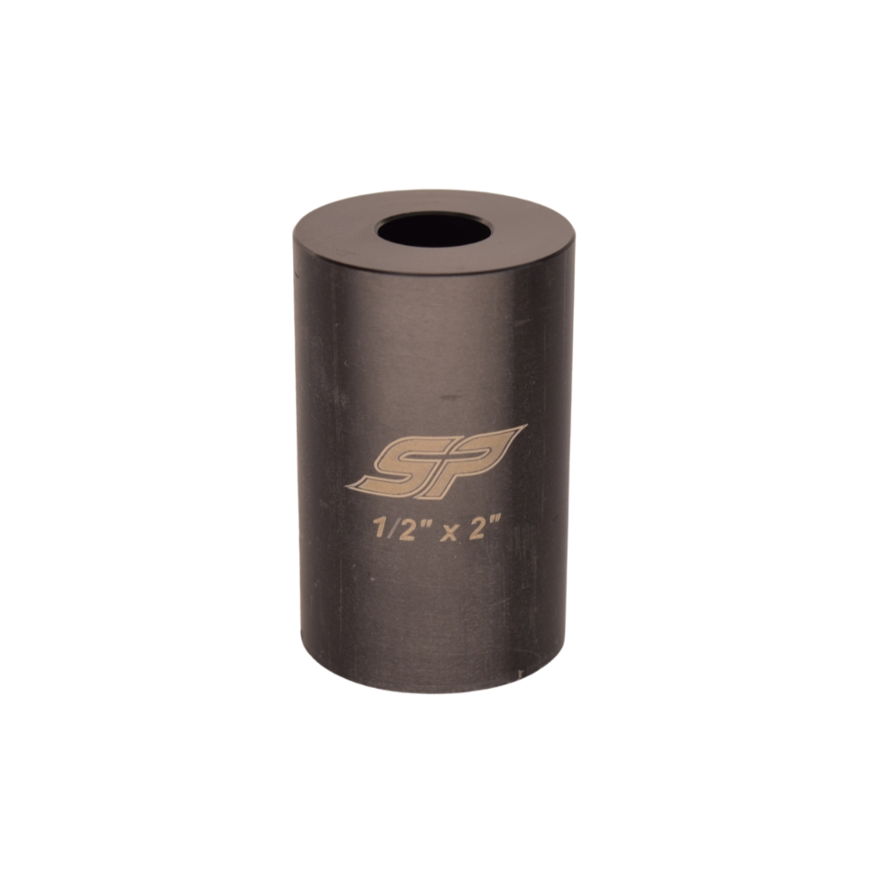 The SP bump stop spacer – .500″ID is made out of durable Delrin material. The material is light weight and very strong. The SP bump stop spacer – .500″ID is made to be easier on the shock or bump stick shafts. Aluminum spacers can mark up the shaft and when we use Delrin, we can minimize any discoloration or wear on the shafts. It is made with an OD of 1.25″. The spacer is available in 1/2″, 1″, 1-1/2″ and 2″ lengths. The spacers are laser etched for easy identification of the ID size and the length.