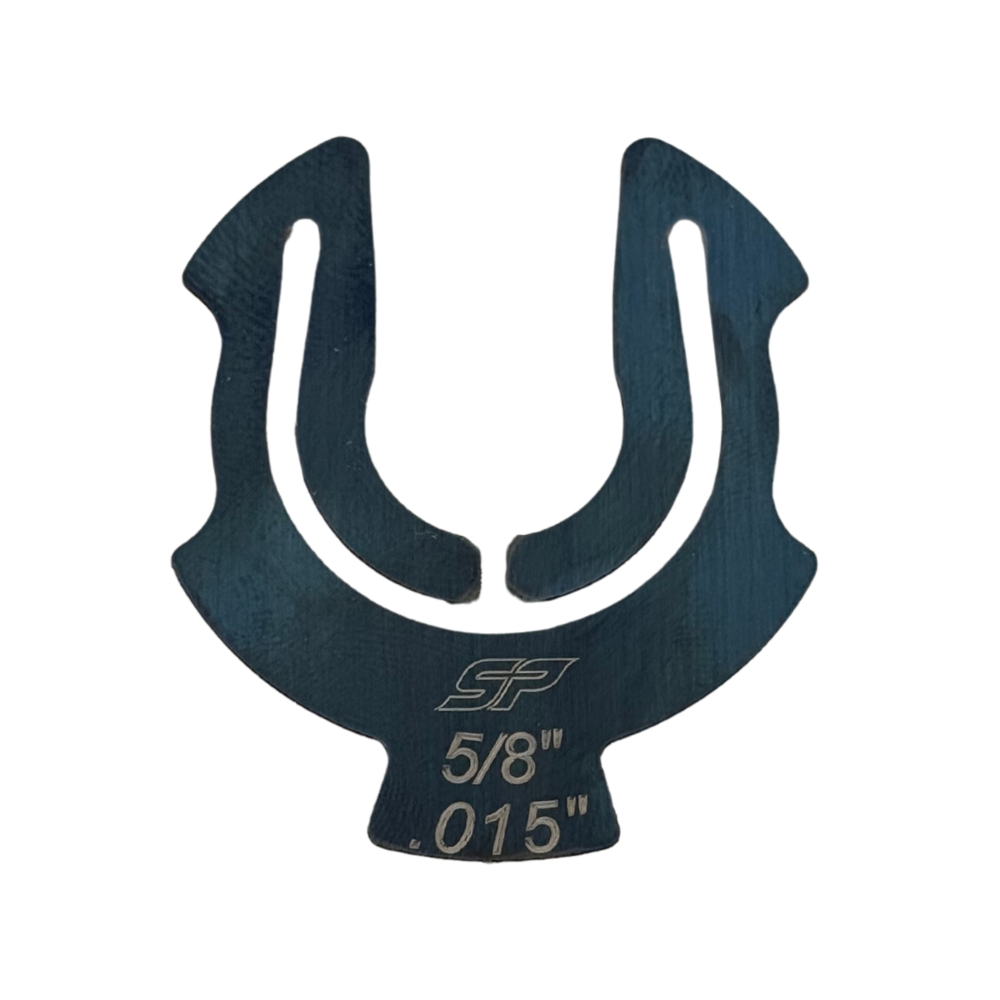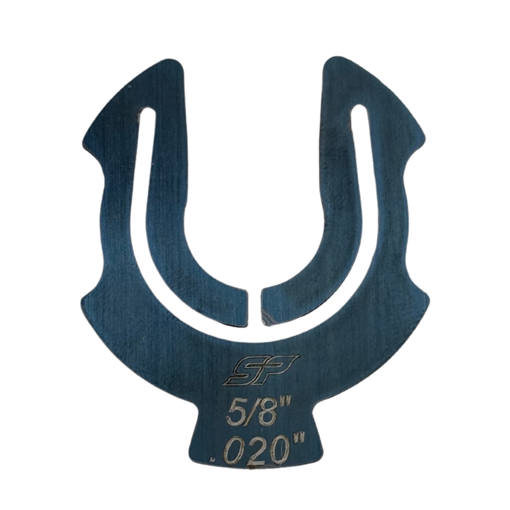 The packer for .625 shaft is made out of a durable 1095 steel for longevity use. It is designed for repeated installation and removal the packer for .625 shaft and retaining its hold ability. Every packer is etched for the shaft size and thickness, and on both sides for easy identification of the packer’s size. A tab is incorporated in the packer for easy removal and installation, also makes for easy quick identification of the size when installed. Also, these packers feature two notches on each side to assist in removal of the packer.